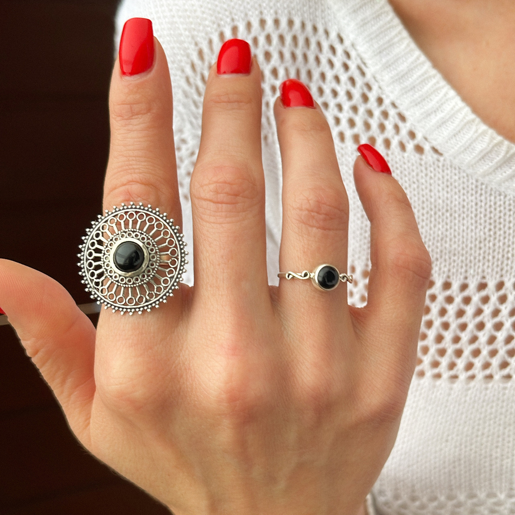 Transforme seu visual com o Anel Indiano Pedra Ônix em Prata 925 e descubra a elegância e o charme que somente um acessório exclusivo pode proporcionar!
