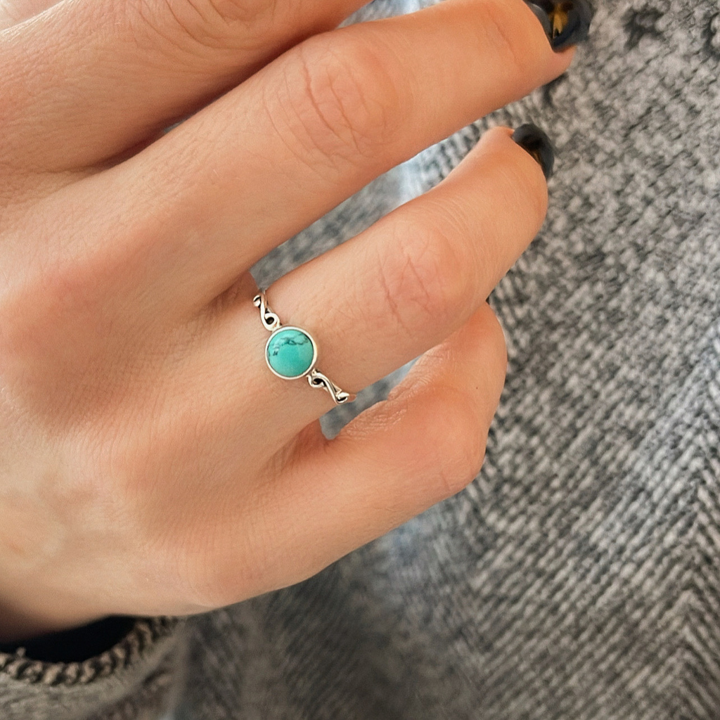 Com design marcante e alma boêmia, este anel em prata indiana 925 traz como protagonista a pedra turquesa — símbolo de proteção, cura e sabedoria ancestral. A prata trabalhada à mão carrega o estilo artesanal característico da ourivesaria indiana, enquanto a turquesa, com seu tom azul vibrante, conecta corpo e espírito à força da natureza.
