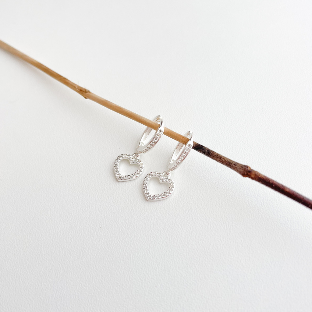 Argolinha de Clique com Coração Cravejado em Micro Zircônia em Prata 925