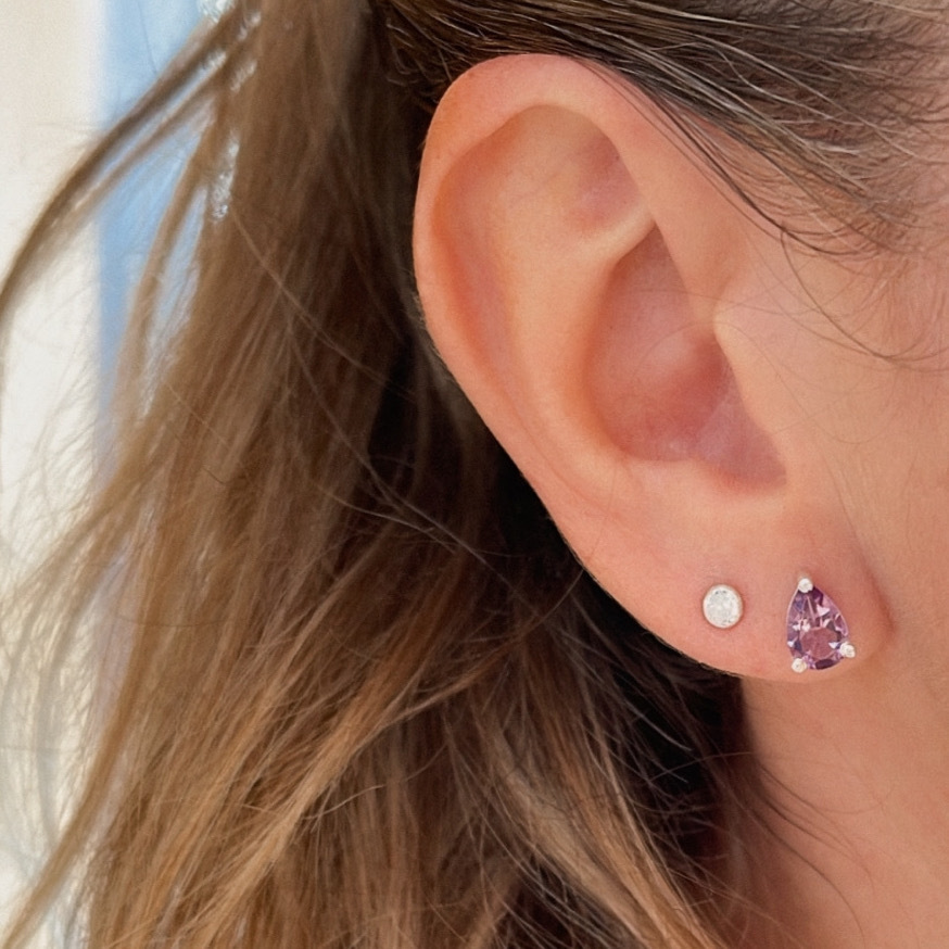 Brinco de Origem Indiana Ametista Lapidada reconstituída.