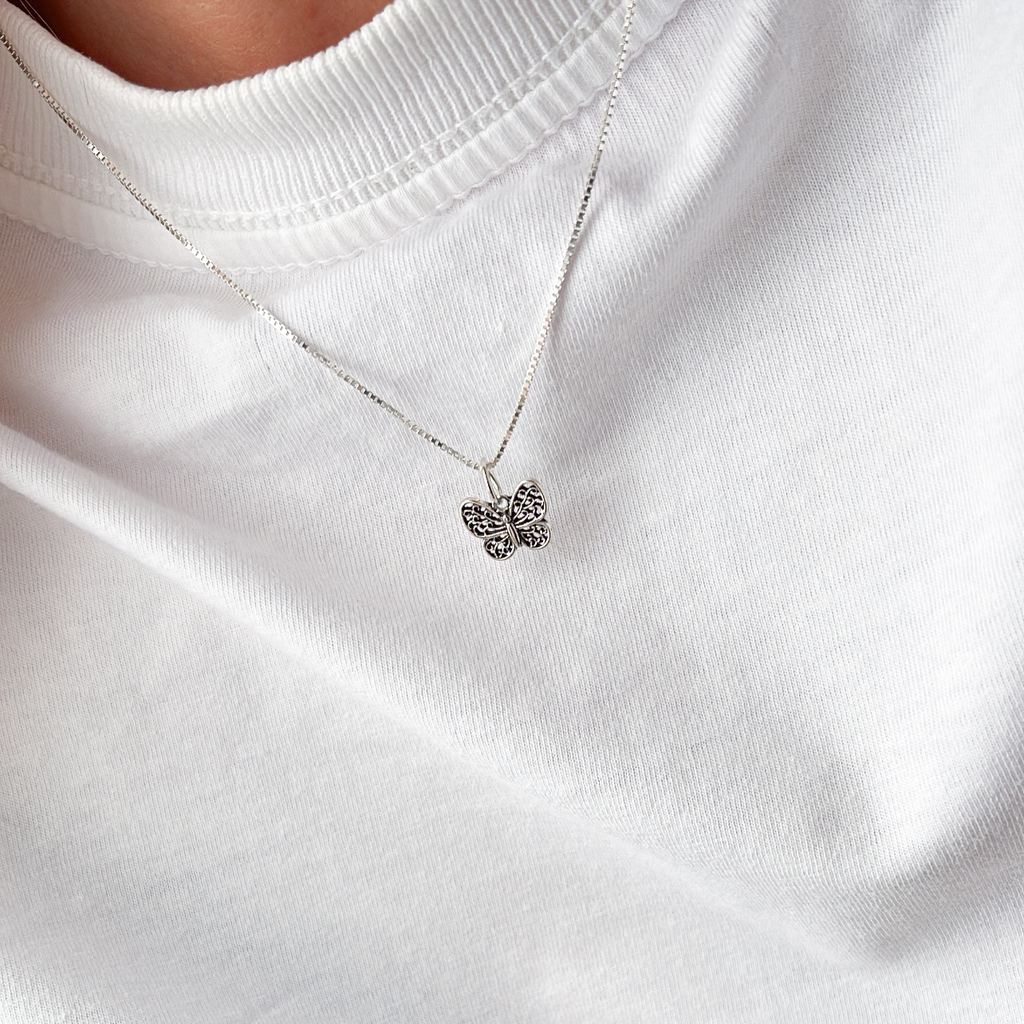 Beleza e Simbolismo: O Colar Borboleta é a peça perfeita para quem deseja expressar liberdade e transformação. Com um pingente de aproximadamente 1,5cm, este colar é ideal para complementar seu estilo de forma sutil e elegante.