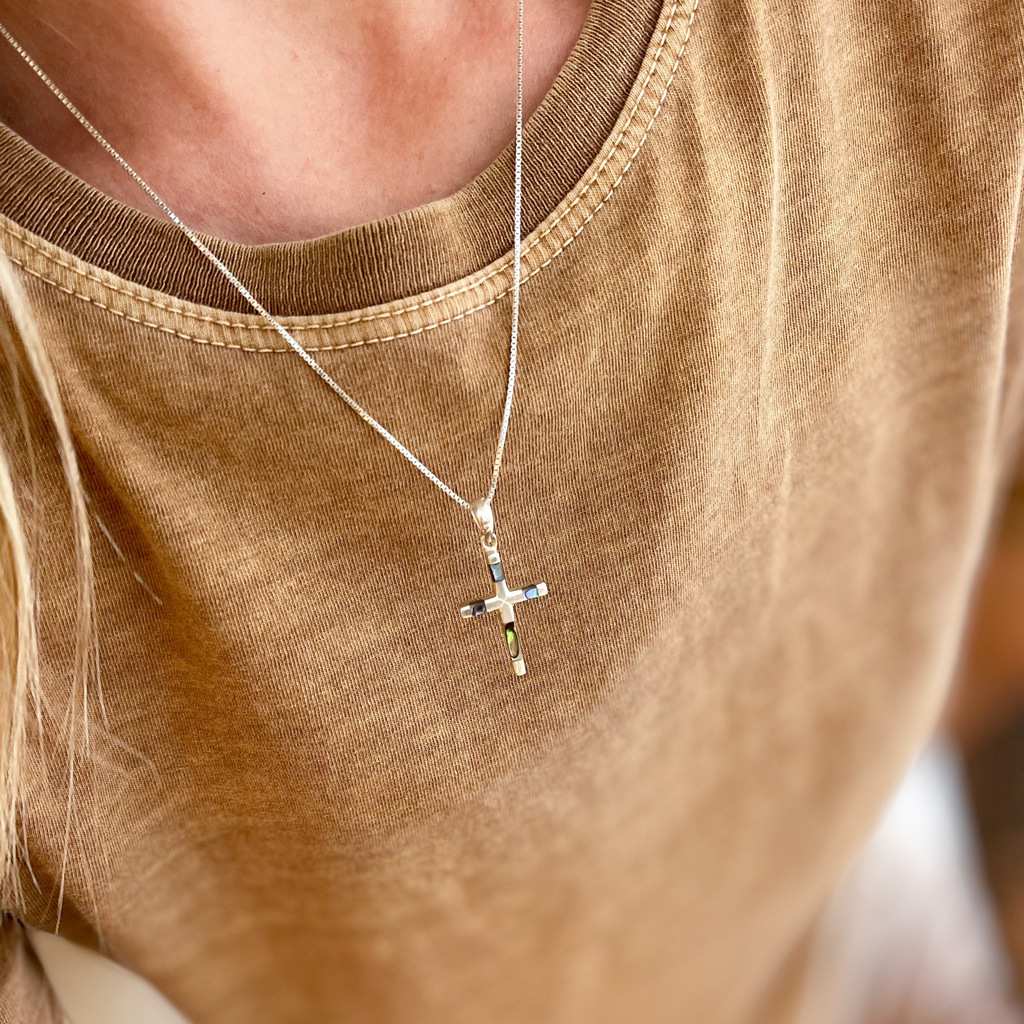 Colar Crucifixo com Detalhes em Abalone: Estilo e Espiritualidade
