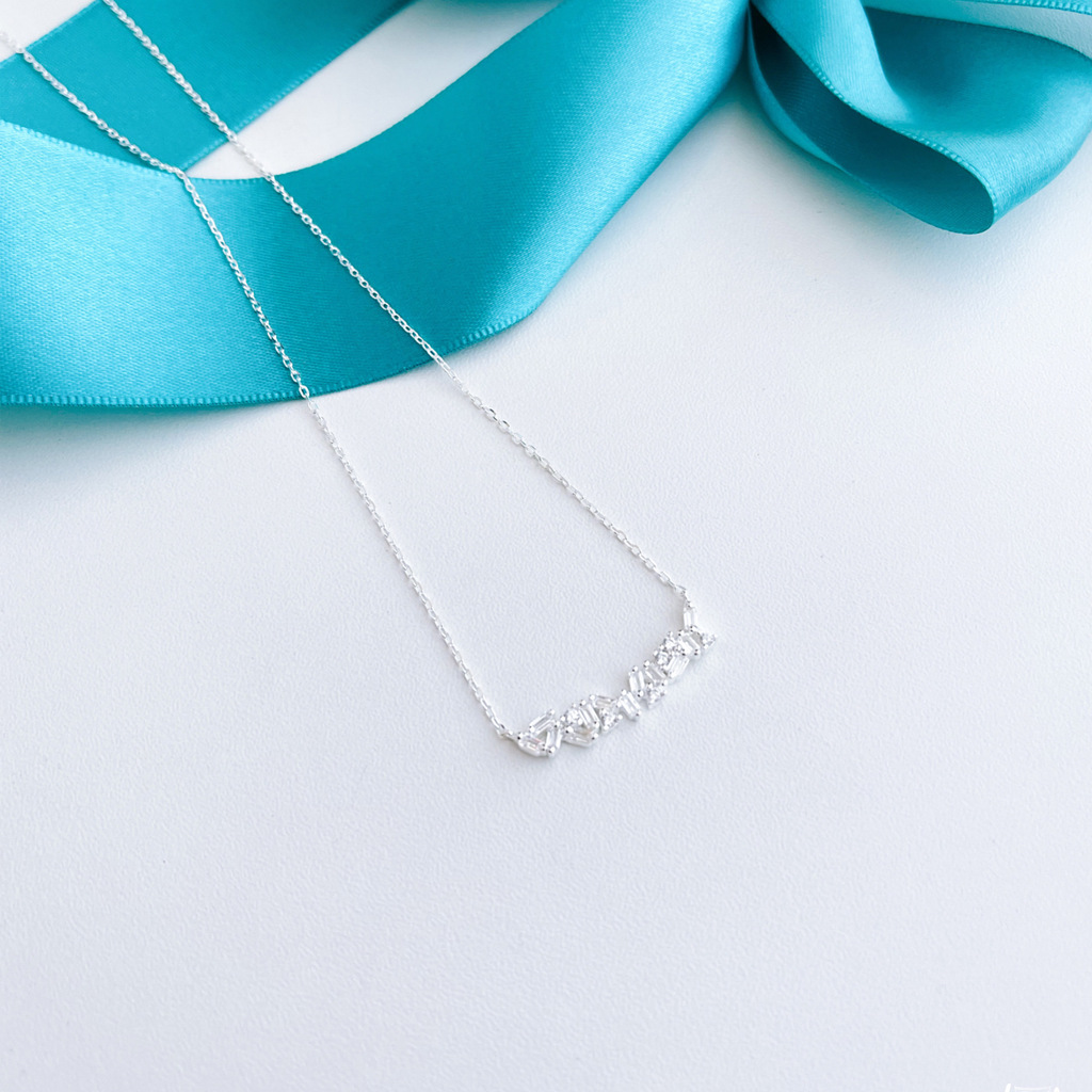 Confeccionado em prata de Lei 925, este colar apresenta cristais agrupados em linha, que garantem um brilho especial. Adicione um toque especial ao seu look com essa peça encantadora!