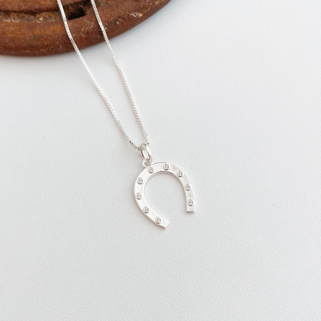 Colar ferradura com detalhes em Zircônias no pingente altura 15mm largura 19mm em Prata de Lei 925.