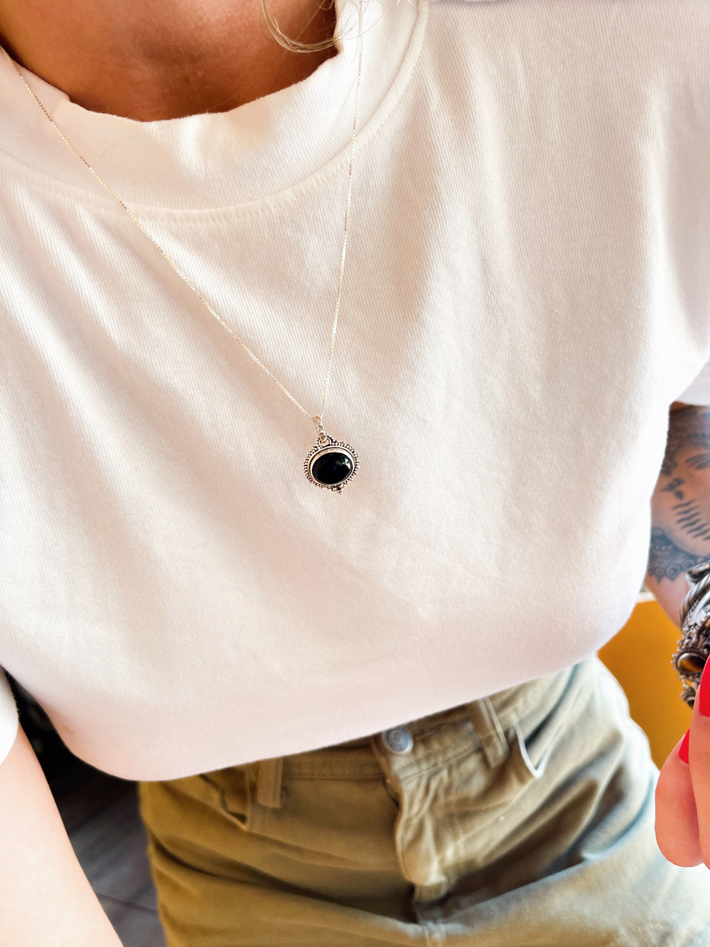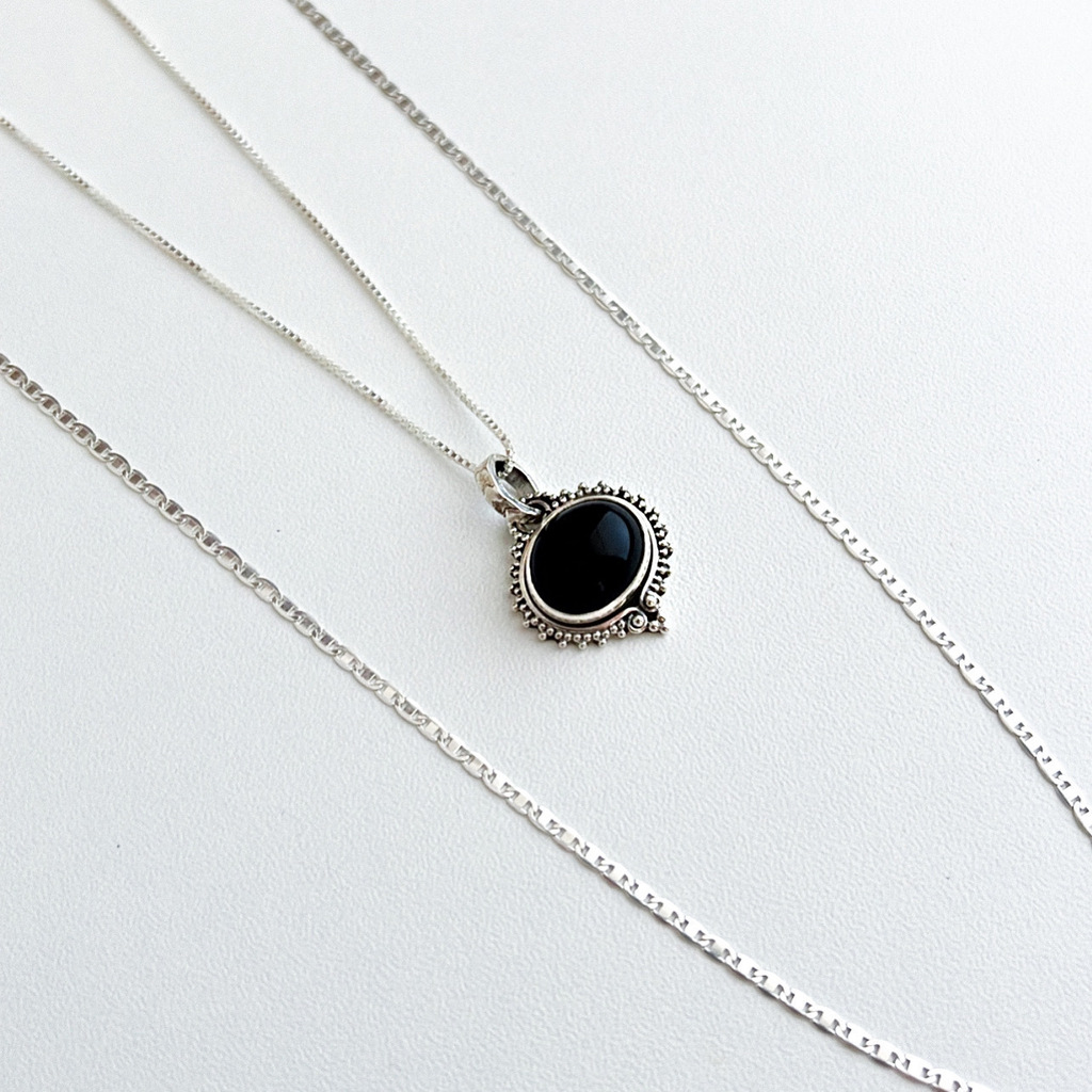 Versatilidade: Perfeito para qualquer ocasião, o Colar Ônix pode ser usado sozinho ou em combinação com outras peças, realçando sua personalidade e estilo.