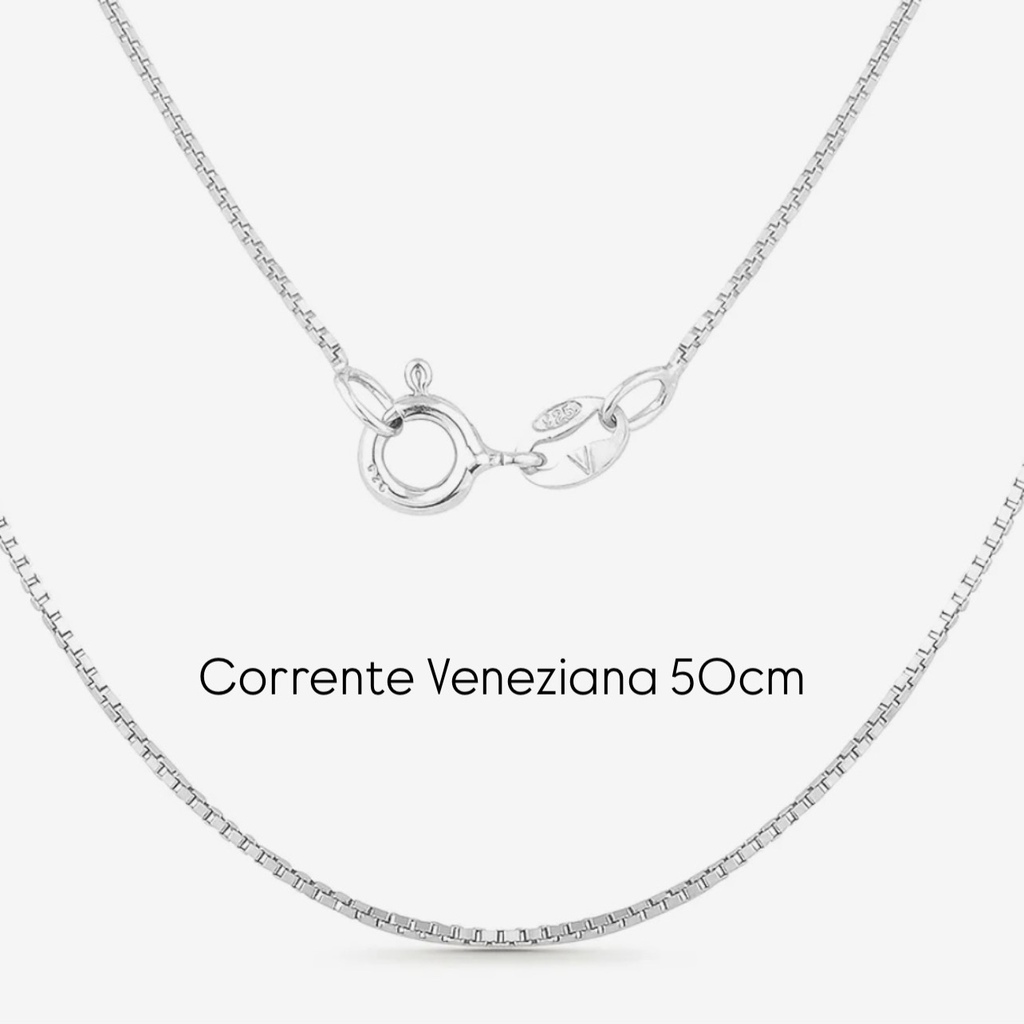 Esta corrente modelo veneziana italiana, confeccionada em prata branca 925, alia elegância e resistência. O pingente de cruz, com aproximadamente 3 cm de comprimento, destaca-se pelo design clássico e delicado, ideal para complementar qualquer estilo com um toque de fé e personalidade.