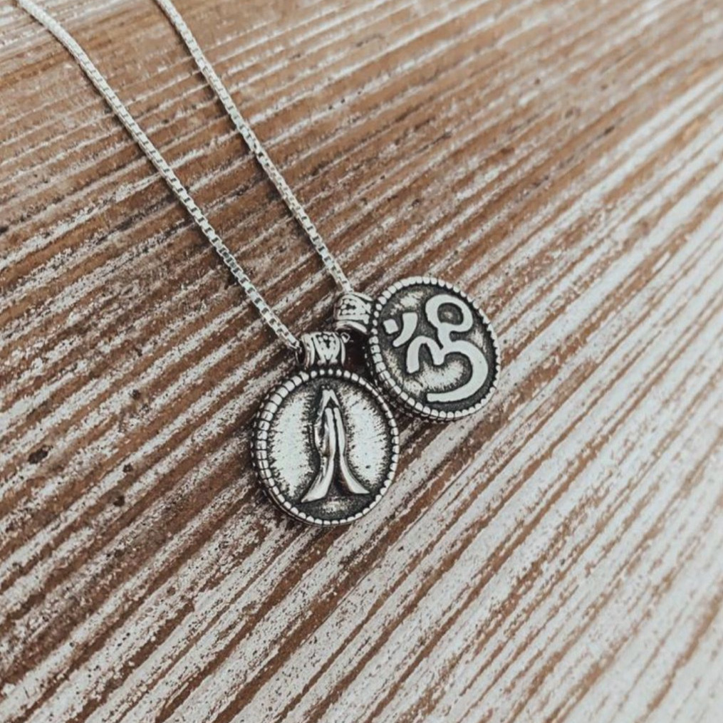 Escapulário Unissex com Medalhas Símbolo On e Namaste - 70cm de Comprimento