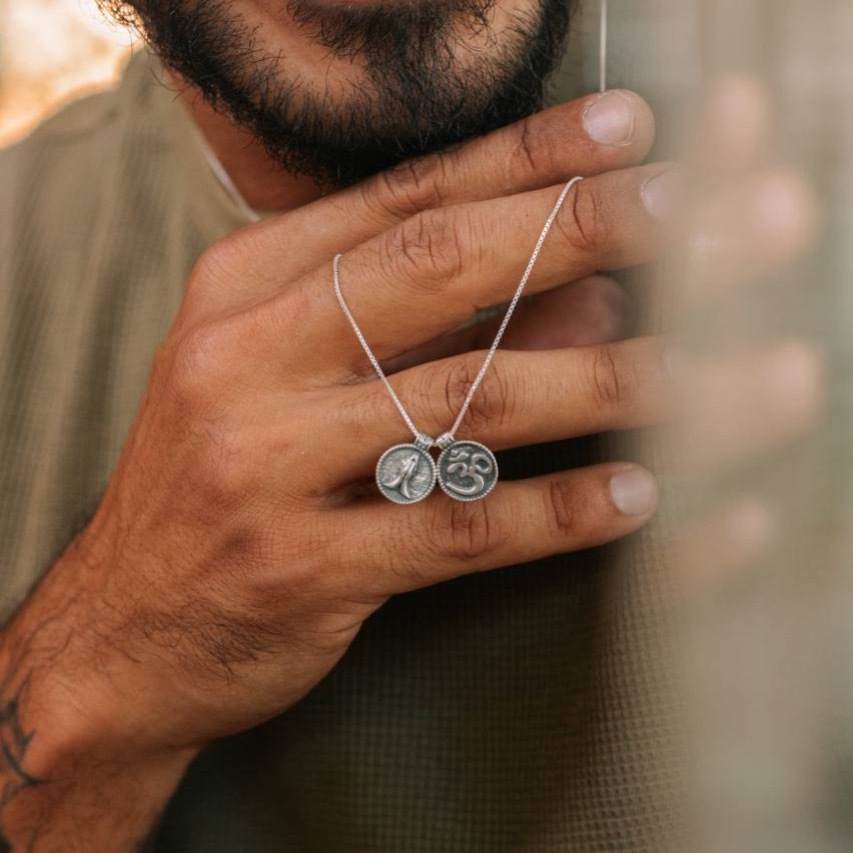 Descubra o poder e a espiritualidade do nosso Escapulário Unissex com Medalhas Símbolo On e Namaste. Esta peça é mais do que um acessório; é uma declaração de estilo e conexão interior.