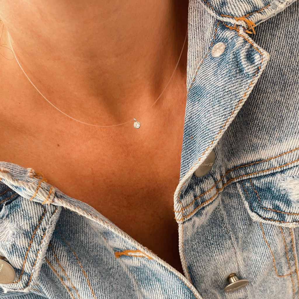 Gargantilha Fio de Nylon com Ponto de Luz – Elegância e Simplicidade