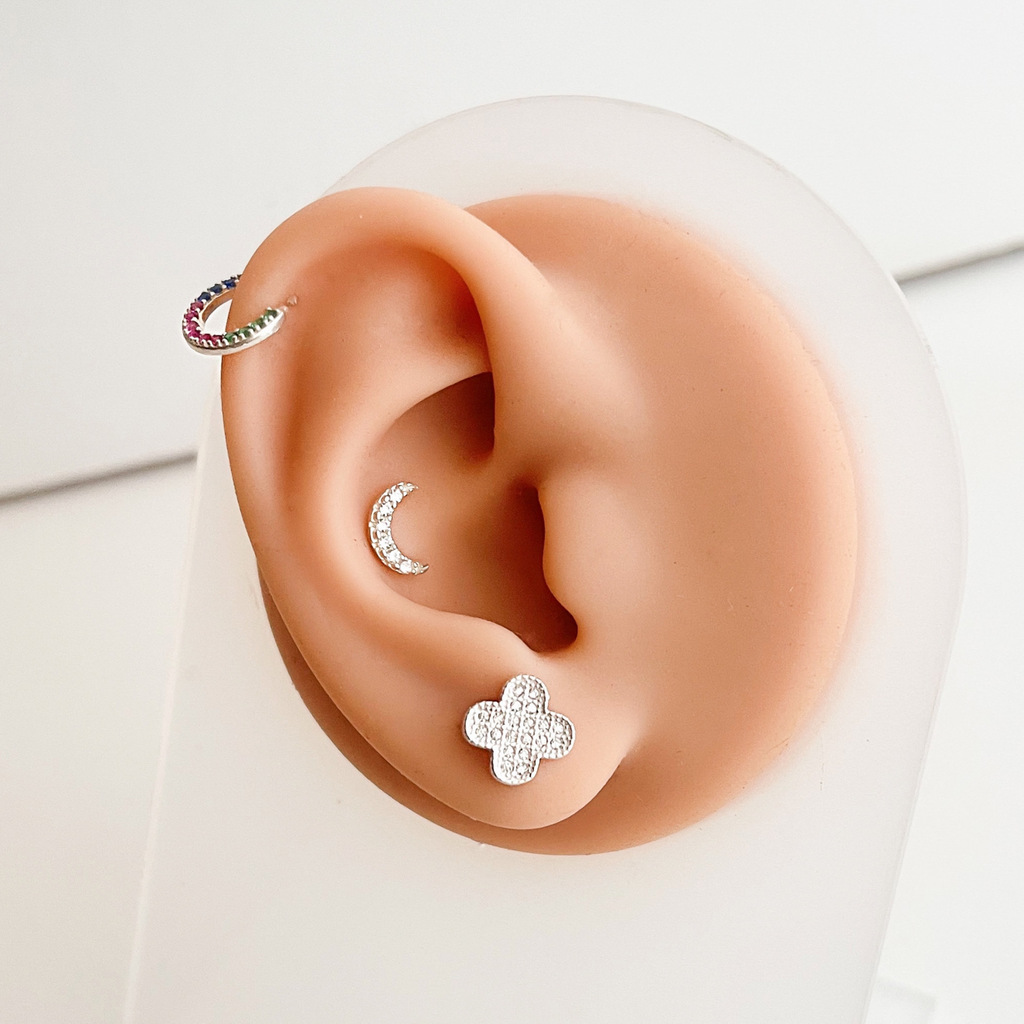 Material de Alta Qualidade Confeccionado com haste em aço cirúrgico e prata 925, este piercing não só oferece um visual deslumbrante, mas também assegura segurança e conforto para a sua pele. A prata 925 é conhecida por ser hipoalergênica, permitindo que você use a peça ao longo do dia sem preocupações, mesmo em peles mais sensíveis.